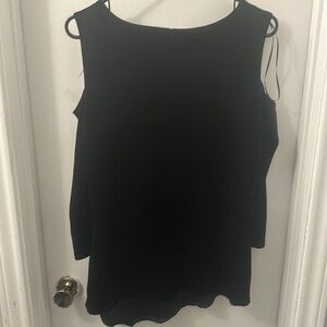 NY Collection Top Black Velvet Cold Shoulder 3/4 Sleeve Asymmetric Hem Like new never worn
