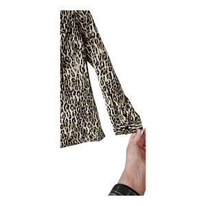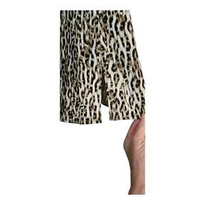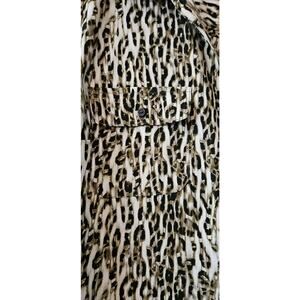 NY Collection Womens P/L Top Shirt Blouse Black Brown Leopard Roll Tab Button
