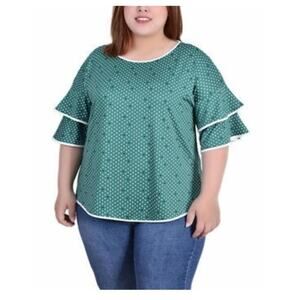NY Collection Women's Plus Ruffle Elbow Sleeve ITY Dot Blouse