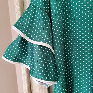 Grab this double ruffle elbow sleeve polka dot plus size blouse now.