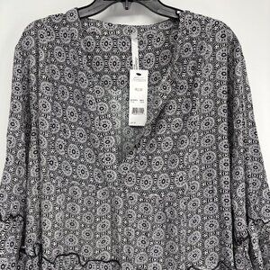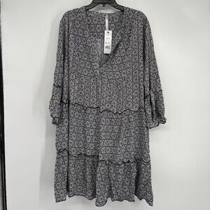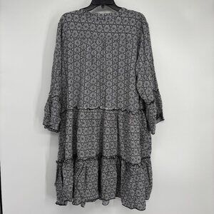 NY Collection Women's Plus Size 3/4 Sleeve Tiered Dress Black White Geo 3X NWT