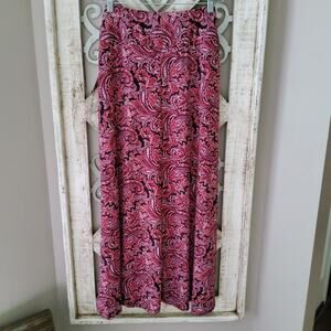 Paisley pull-on sash tie elastic waistband a-line, full flowy maxi skirt by NY Collection available in a petite size medium.