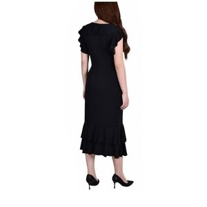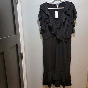 NY Collection Womens Ruffled A-Line Midi Dress Black Size 1X NEW!