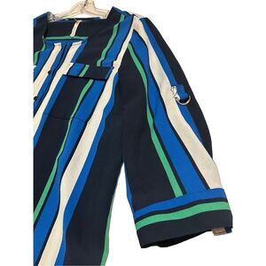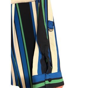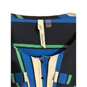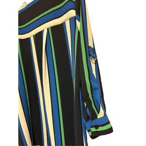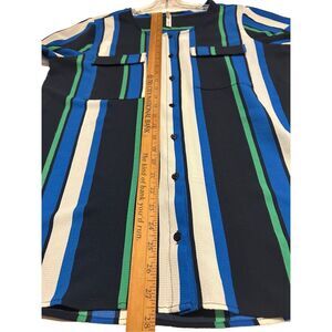 NY Collection Women’s Size L Button Down Striped Career Blouse Roll Tab Sleeves