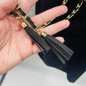 NY Collection Womens Size Large 3/4 Sleeve Sweater Dress with Chain Belt Black