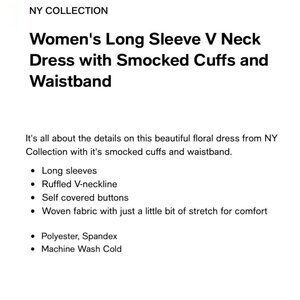 It's all about the details on this beautiful floral dress from NY Collection with it's smocked cuffs and waistband.