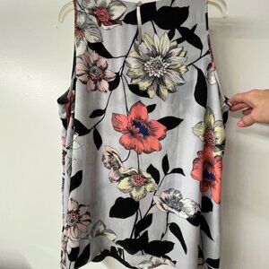 NY Collection Womens Sleeveless Layered Blouse Floral Print Size 1X