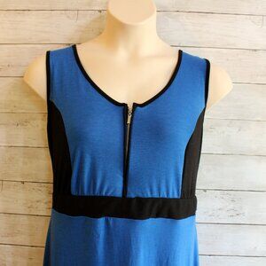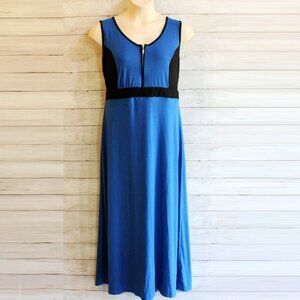 This casual color block maxi dress is made of a jersey type fabric and is so soft and comfy. It has a zipper front and the back waistline has elastic. It is brand new with tags.