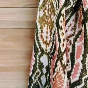 NY Collection Women’s Snakeskin Design Pink Brown Long Sleeve Sheer Button Up S