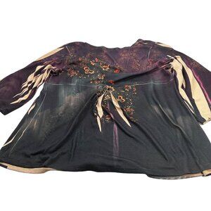NY Collection Women's Sz 1X One Button Over Shirt 3/4 Sleeve Brown Preowned Snag