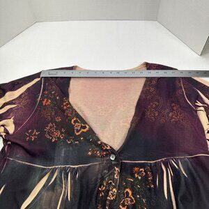 NY Collection Women's Size 1X One Button Over Shirt 3/4 Sleeve Brown Preowned Snag On Back