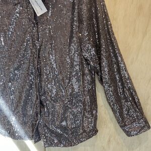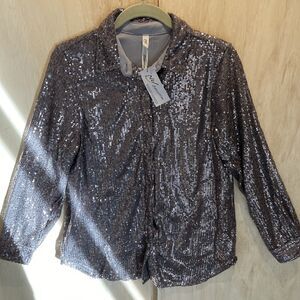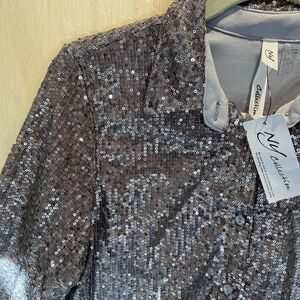 NY Collection Womens glitter sequence party metallic blouse shirt top size Large