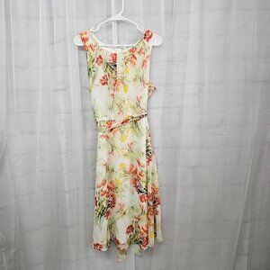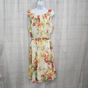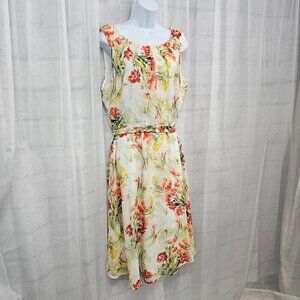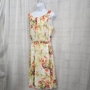 NY Collection Yellow Coral Floral Sleeveless Midi Dress Romantic Ethereal 1X