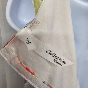 Yellow, coral green, white and a hint of blue in an ethereal romantic floral print