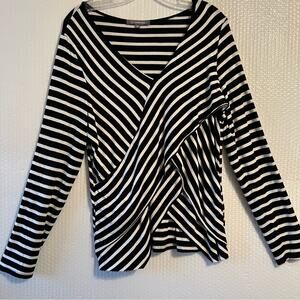 NY Collection long sleeve top. Black and white stripes with a V-neck size, extra-large machine, wash, cold, gentle cycle, tumble, dry low. # 10014