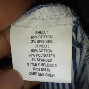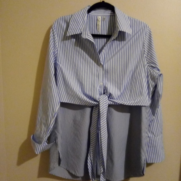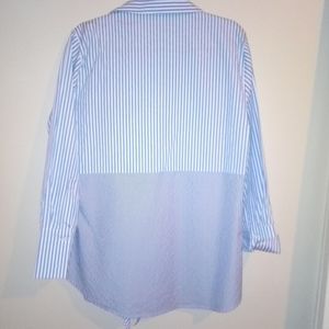 Blue and white stripe.. tie in front..french cuff sleeve. Gently used. (XL)Care on tag