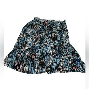 NY Collection dot patterned midi skirt black with aqua and pink. Size XL UU