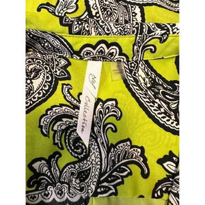 NY Collection neonGreen Black Womens Paisley Print Button Front Top Size M #0600