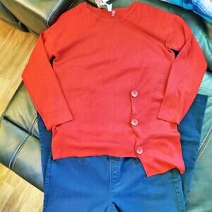 NY Collection new red button detailing asymmetrical sweater size petite L