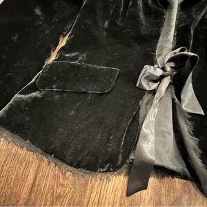 NY Collection sz medium black velvet tie front blazer with fringe trim