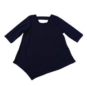 NY Collection Navy Blue Half Sleeve Asymmetrical Stretchy Blouse Women's Large