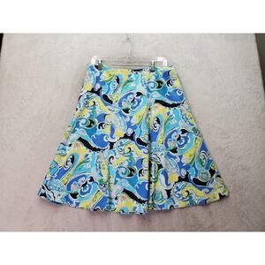 NY Collections A Line Skirts Women's Medium Blue Floral Print Cotton Side Zipper