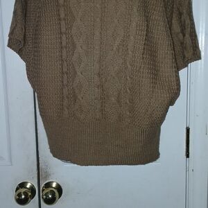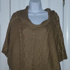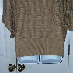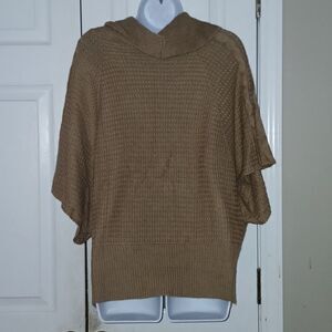 NY Collection tan cowl neck short angle sleeve sweater Sz M EUC