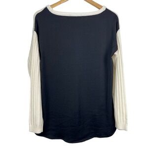 NY & Company Color-Block Mixed Ribbed/Knit High Low Scoopneck Sweater Small