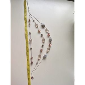 NY Jewelry Multi Strand Necklace W/ Stones pink Clear Marble Signed 20” Long
