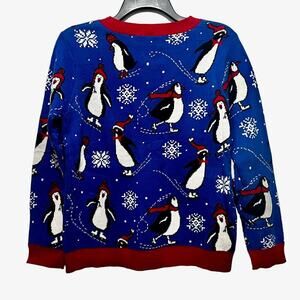 NY Laundry Holiday Classics Penguin Sequined Bow Tie Ugly Christmas Sweater