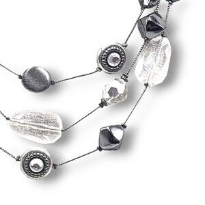 NY Multi Strand Necklace Gunmetal Gray Black Clear Adjustable Length