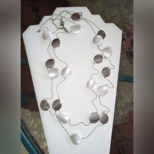 NY Necklace Silver & Gun Metal Color Flat Beads 2 Strand Station 38"