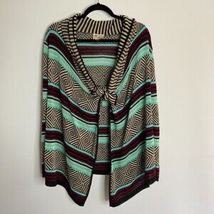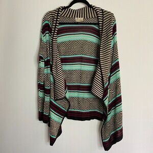 NY Say What? Knit Cardigan Open Front Retro Geometric Print Made in USA Size M