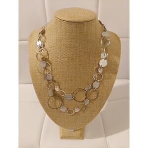 NY Silver Tone Circle Ring Hoops 16" Necklace