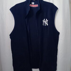 Size XL Men's - NY YANKEES/ BABY RUTH Blue color sleeveless fleece vest with Functional Zipper closure and Functional Pockets the Material is listed in the photos in good pre-owned condition