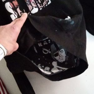 inside is a circa 1994 Oakland Raiders Mean Machine banner (given at 93-94 regular season games to season tickets holders and some games to all)