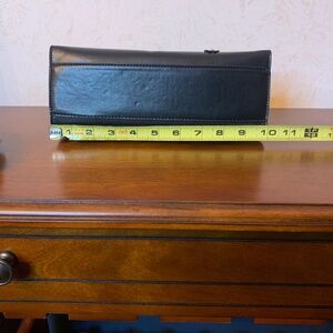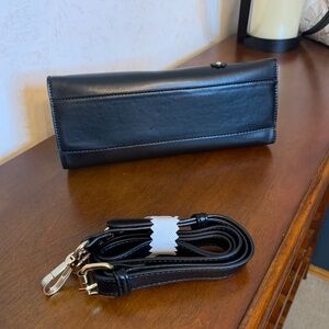 This cute little NY&C black bag is great to carry or wear across the body. It’s delightful little flowers and gold-toned hardware add just the right touch for an all around bag. Measures approximately 7 1/4” length x 10” wide.