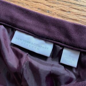NY&C Faux Suede Burgundy Floral Mesh Flutter Hem Midi Skirt 6 Fairy Boho Office