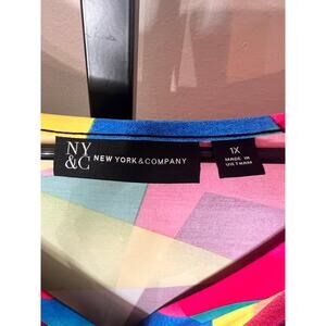 NY&C Geometric Print V-Neck Waist-Tie Maxi Dress NEW Size 1X