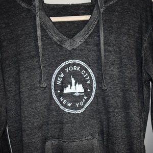 NYC logo, thin pullover with hood, distressed grey, SO SOFT, (inside tag cut out because it was itchy)