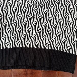 NYC Knits Black & White Mini Braid Pattern Cropped Crewneck Sweater, size Large