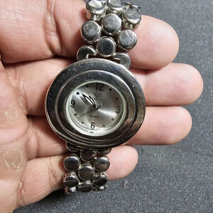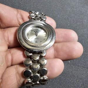 NY&C Ladies Quartz Analog Watch Silver Tone Silver Dial Working New Battery show