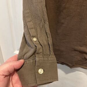 Good pre owned condition. Button down popover. Roll tab sleeves. Slightly sheer. Some washwear present.