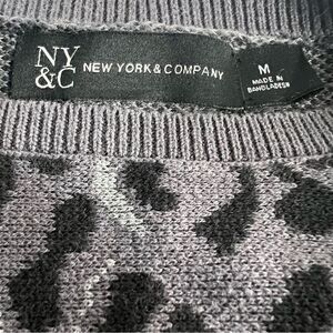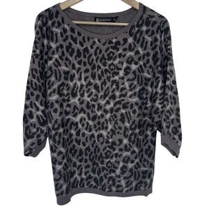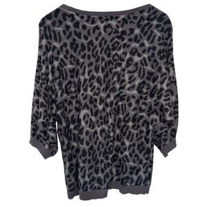 NY&C Leopard-Print Easy Dolman Sweater Womens Medium Gray/Black Pullover Top