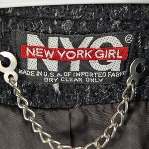 NYC New York Girl Size 6 Tweed Wool Blend Coat Womens Black Gray Double Breasted