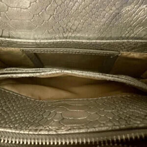 Crafted by New York & Company, this chic silver crossbody bag offers a sleek addition to your accessory collection. Its faux leather exterior is complemented by an animal print pattern, making it a standout piece for any ensemble. The bag features a convenient zip closure and a brown polyester strap that ensures comfort and durability for everyday use.Inside, you'll find a brown fabric lining, providing a warm contrast and extra protection for your belongings. The small size makes it an ideal choice for on-the-go essentials without the bulk. With its subtle hardware in silver, this bag maintains a seamless look, perfect for the woman who appreciates elegance and practicality.