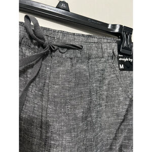 NY&C Street Pants Women M Linen Blend Pull On Elastic Waist Straight Leg Gray