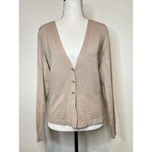 NY&C Tan V-Neck Cardigan Sweater Button Front Ribbed Knit Hem & Cuffs