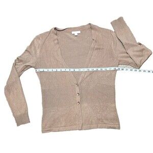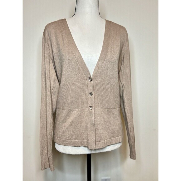 NY&C Tan V-Neck Cardigan Sweater Button Front Ribbed Knit Hem & Cuffs