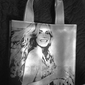 Great looking handbag by Victoria Secret with a picture of one of the models on the outside of this bag. Pink interior with the Victoria Secret logo sewn into the upper inside siding.